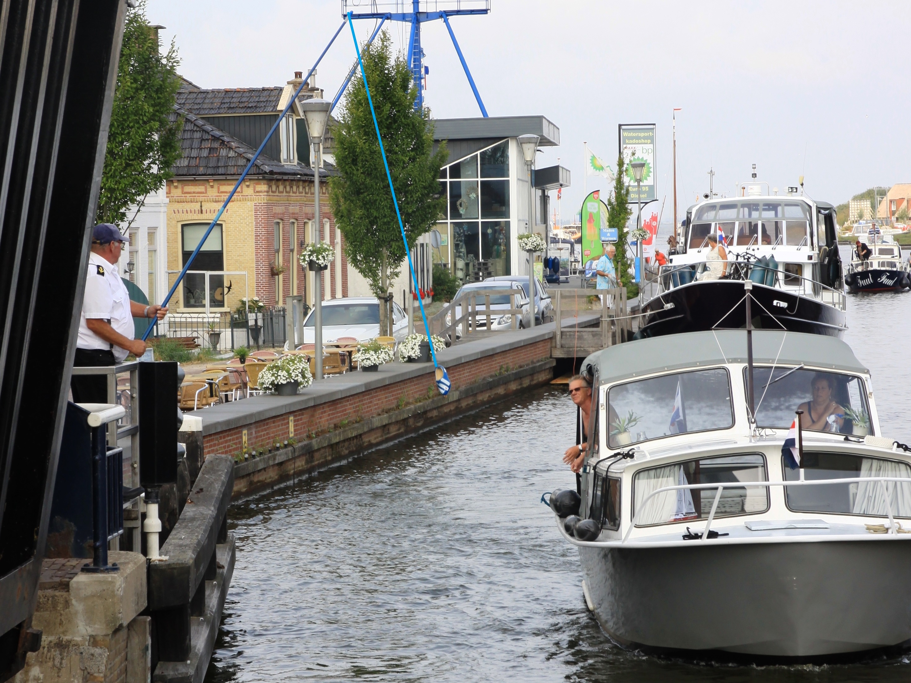 Morgens um neun sind wir die Ersten, für die die Brücken von Sneek geöffnet werden. Dabei haben wir Gelegenheit, ein paar schöne Fotos von Bord aus zu schießen. Zusammen mit etlichen anderen Booten fahren wir um die Altstadtinsel herum, zuletzt vorbei am Wahrzeichen der Stadt, der Waterpoort.