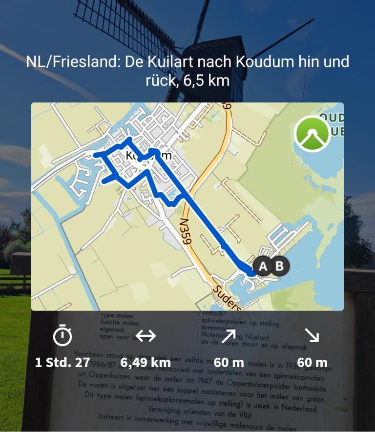 Das von hier kaum drei Kilometer entfernte Koudum ist nicht spektakulär, hat mit seiner Kornmühle "De Vlijt", der Martinikirche, dem Hafen jedoch ebenfalls einen Besuch verdient!
