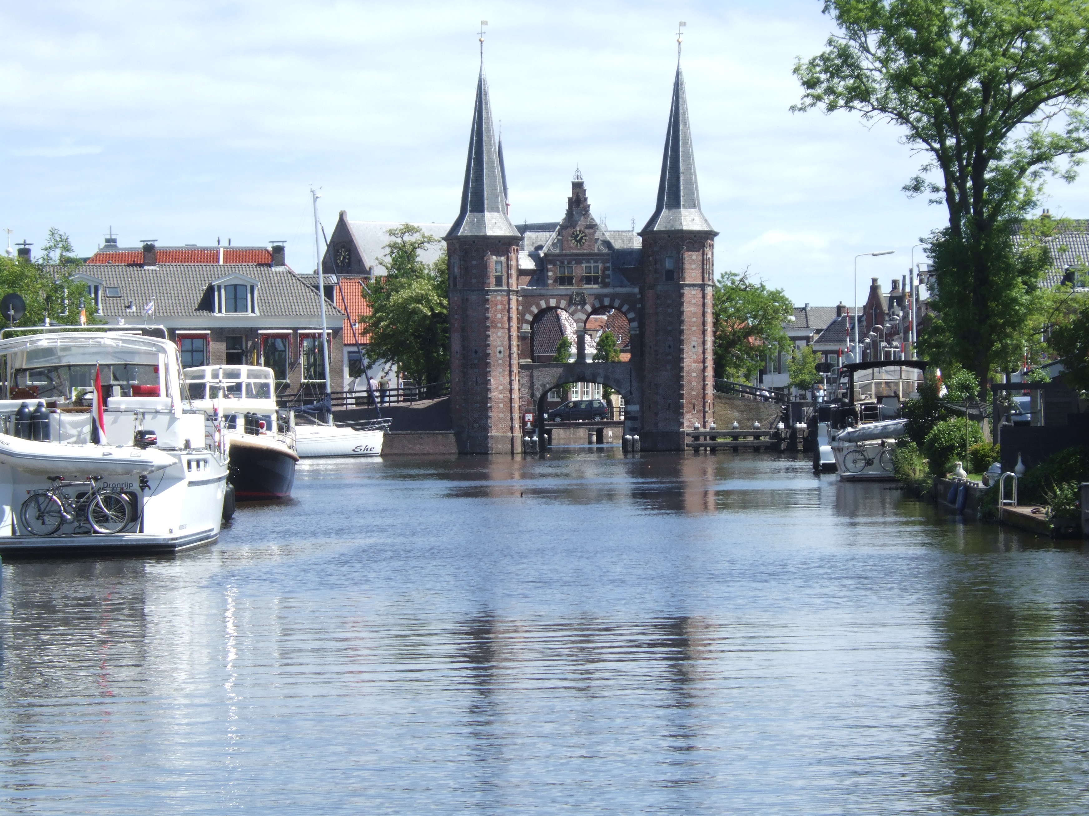 Über die schon bekannte Strecke (Prinses Margrietkanaal, Schleuse Terherne) geht es ins Sneekermeer und an dessen Ende leicht nordwestlich nach Sneek. Die Fahrt durch die Brücken heben wir uns für morgen auf, denn wir wollen noch "die heimliche Hauptstadt Frieslands" erobern. Wir machen also "vor den Brücken" in einem der Jachthäfen fest und legen mit dem Fahrrad die Strecke bis zum mittelalterlichen Wassertor schnell zurück.
